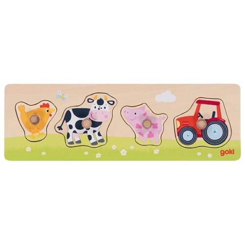 Fullkomið fyrsta púsl frá Goki fyrir yngstu börnin. Það eru fjögur púsl, allt eitthvað sem að börnin tengja við sveitina! Það eru stórar höldur á púslinu svo þau henta einstaklega vel í litlar hendur.