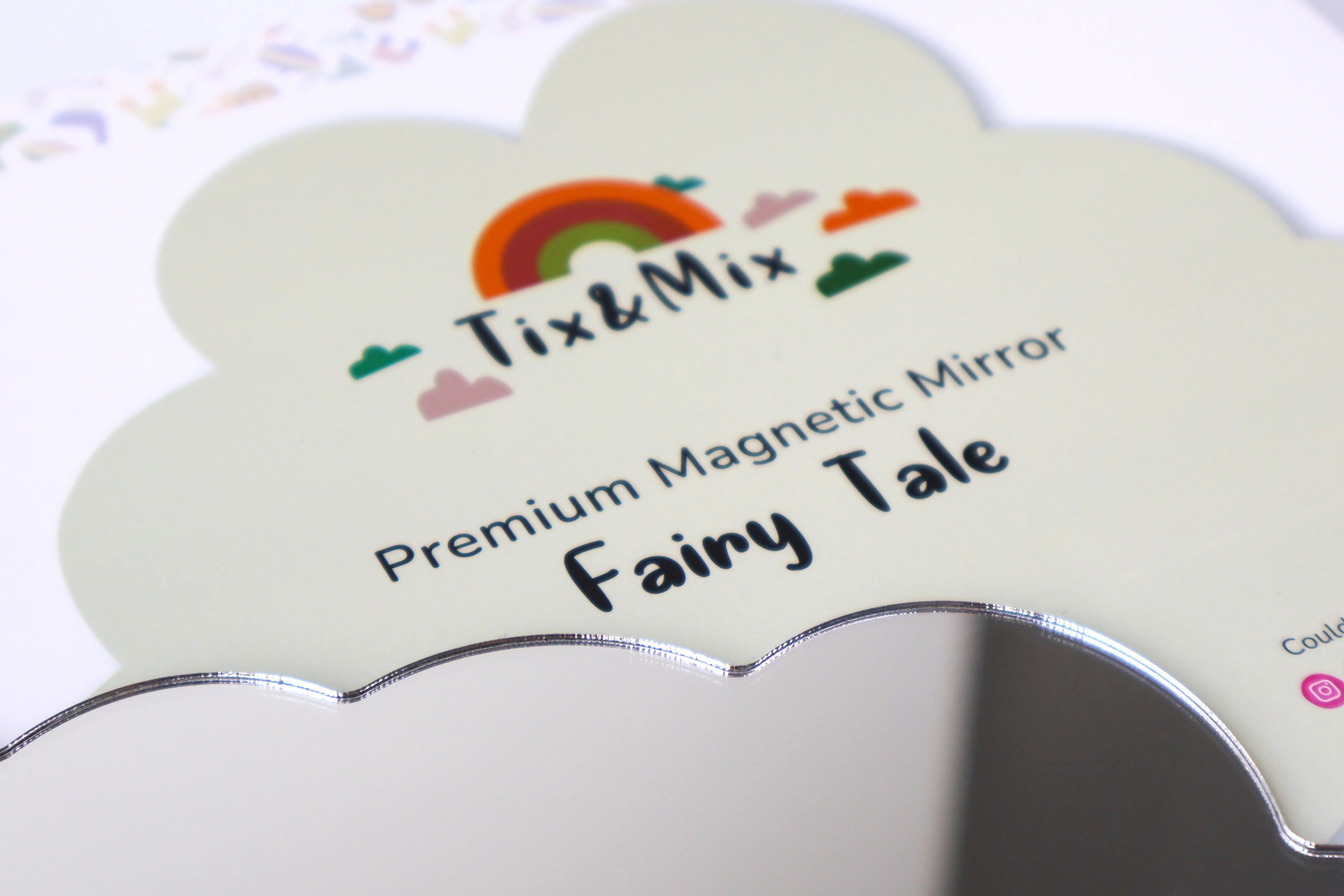 Spegill sem er hannaður fyrir Tix&Mix segulvegginn. Spegillinn er ekki gerður úr gleri eða brothættu efni heldur er hann hannaður fyrir börn úr barnvænum efnum.